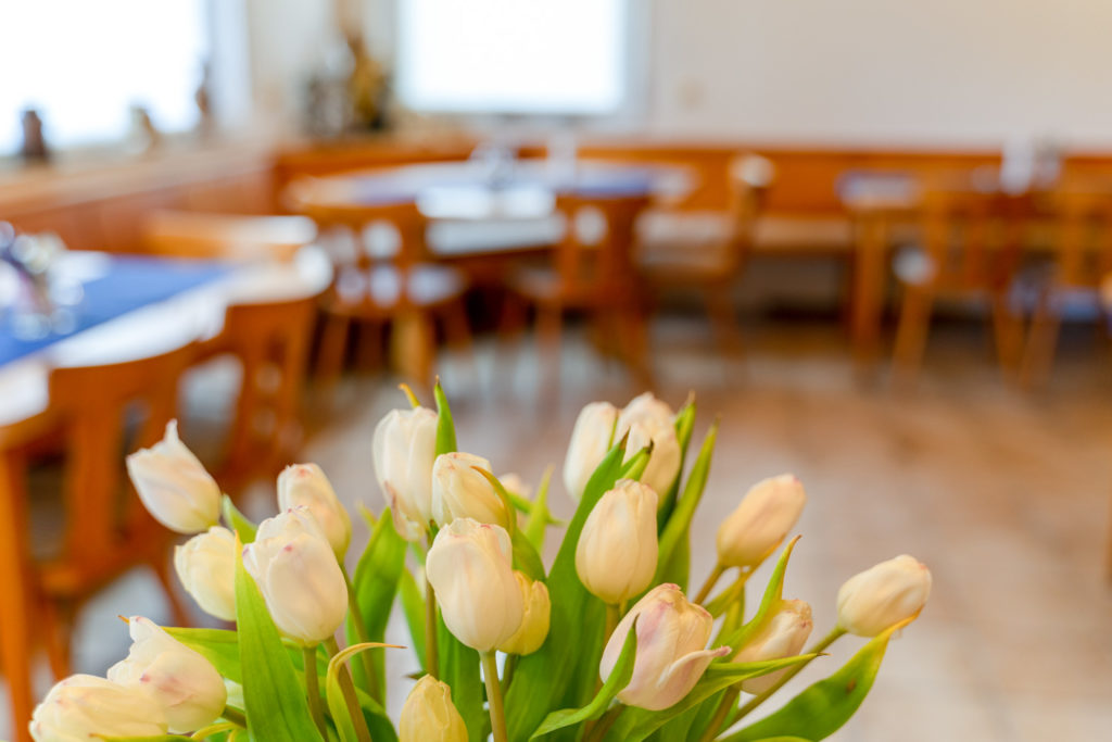 An das alte Restaurant erinnert heute nur noch unser lichtdurchfluteter Frühstücksraum, in welchem unsere Gäste mit einem leckeren Frühstück gut in den Tag starten können.
